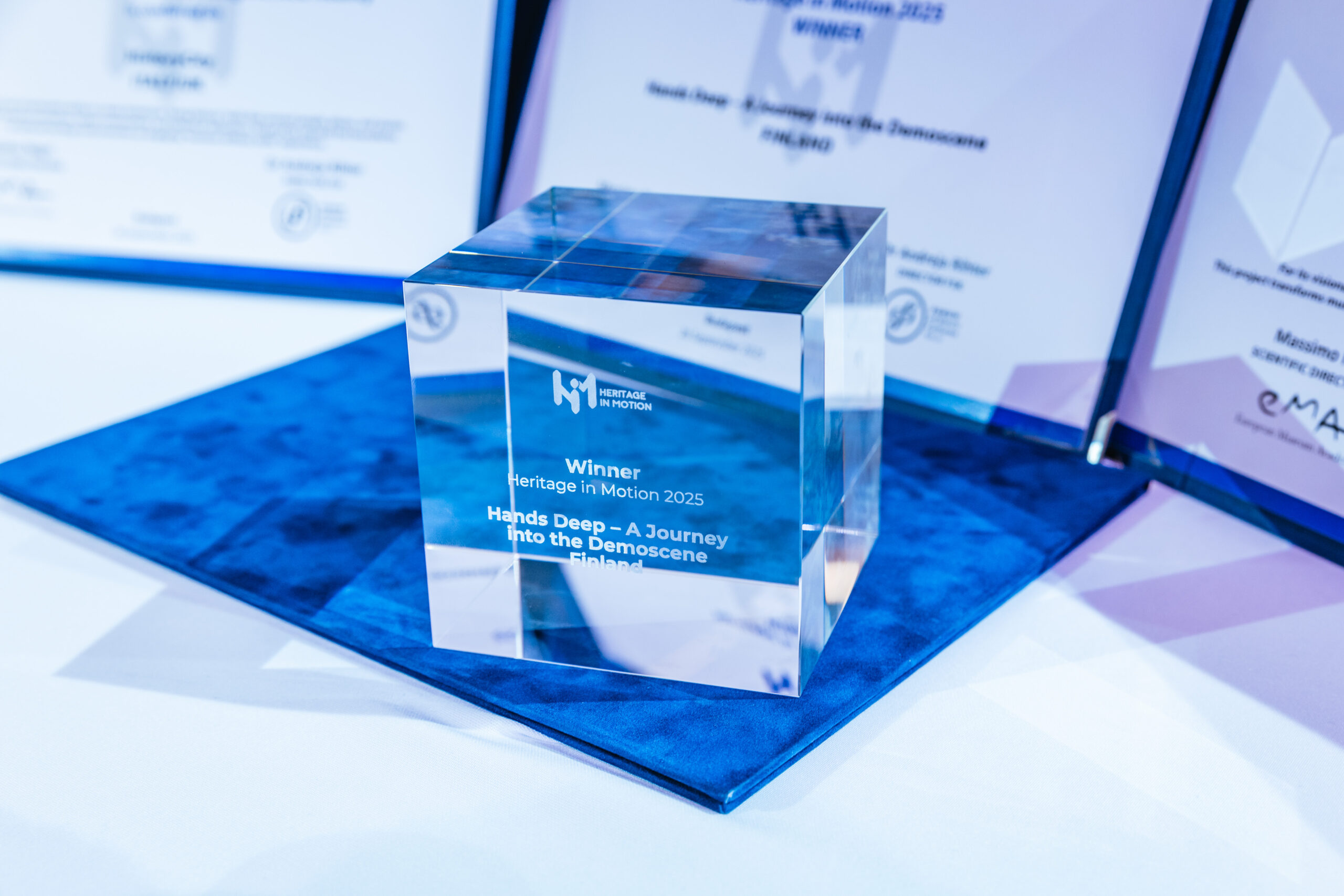Postimuseon ja Suomen pelimuseon yhdessä toteuttama Hands Deep – Matka demoskeneen -dokumenttielokuva on voittanut pääpalkinnon arvostetussa Heritage in Motion -konferenssissa. Lisäksi elokuva palkittiin Heritage Audiovisuals -kategorian parhaana teoksena. European Museum Academyn vuosittain jakamat tunnustukset myönnettiin palkintogaalassa Budapestissa 26.9.2025.