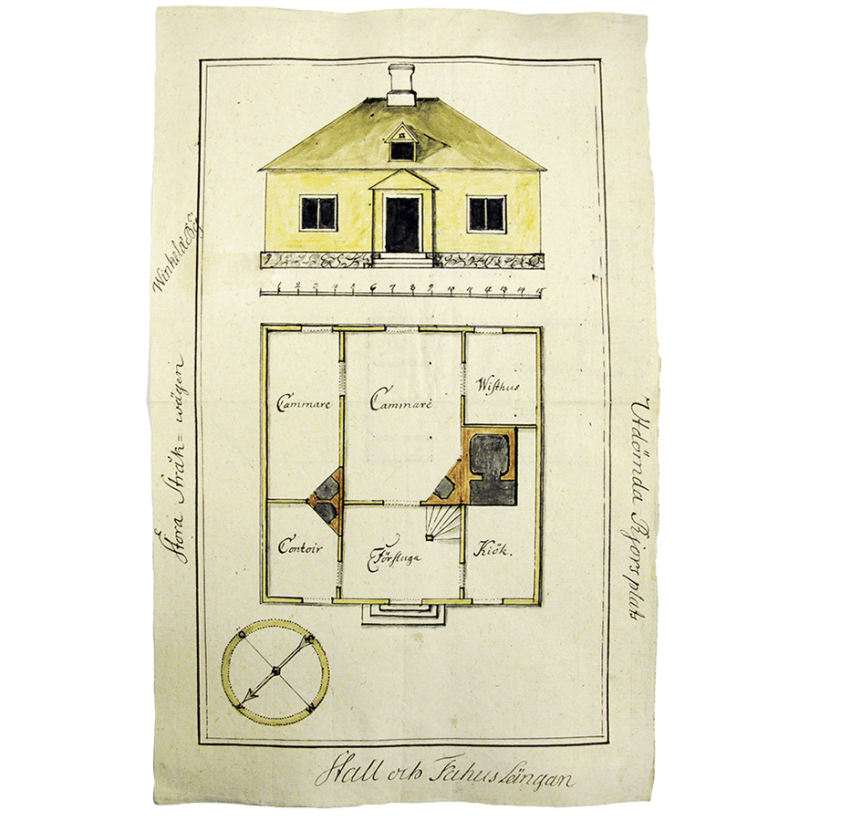 Vinkkilän postikonttorin piirustus vuodelta 1757. Talossa oli postikonttori, kamareita sekä navetta kolmelle lehmälle ja hevoselle. Kruunun rakennuttama postikonttori oli harvinaisuus. Yleensä se toimi postimestarin kotona.