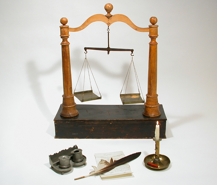 Postimestari tarvitsi erilaisia työvälineitä: sulkakynää, muste- ja hiekkatolppoa kirjeiden kirjoittamiseen, kynttilää ja sinettilakkaa niiden sulkemiseen. Vaakaa käytettiin lähetysten punnitsemiseen.